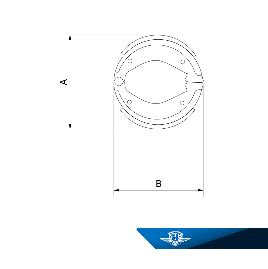 NTS brake shoes are measured with the heels facing each other.