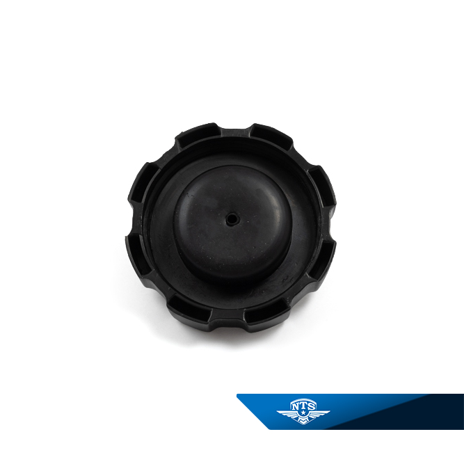 The fuel cap is made of fuel-resistant plastic with an integrated rubber seal. The seal is designed to maintain elasticity and tightness at varying temperatures and pressures.