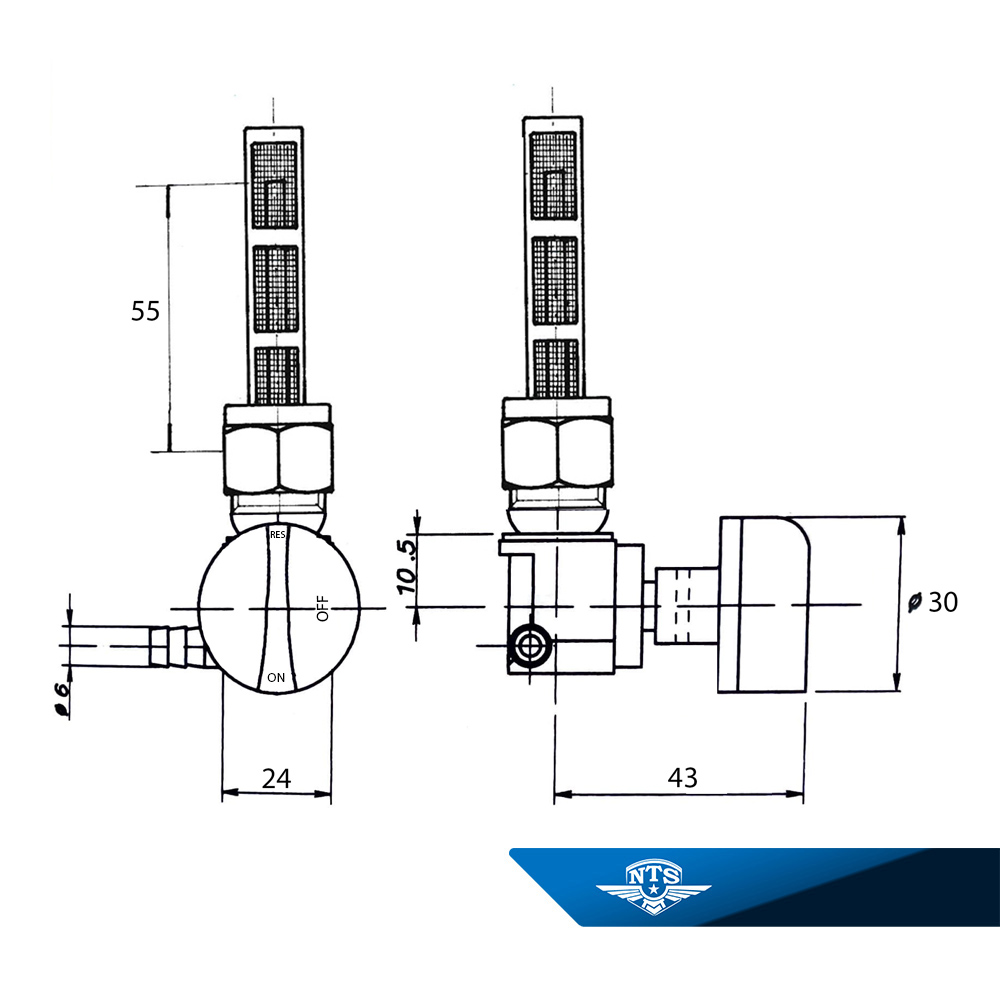 Manual Fuel cock for mopeds intended for installation in the fuel tank. Designed for safe shut-off and controlled fuel supply to the carburetor. Equipped with three operating positions: ON, OFF and RES (reserve).